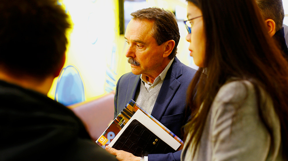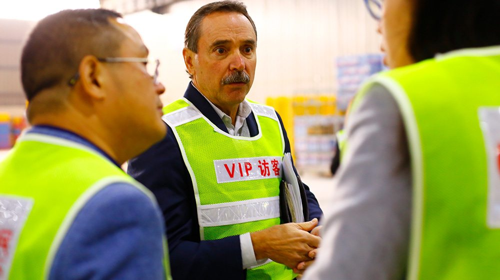 (Jim Murphy参观wepoker官网版直营店,并对进口商品做详细询问)