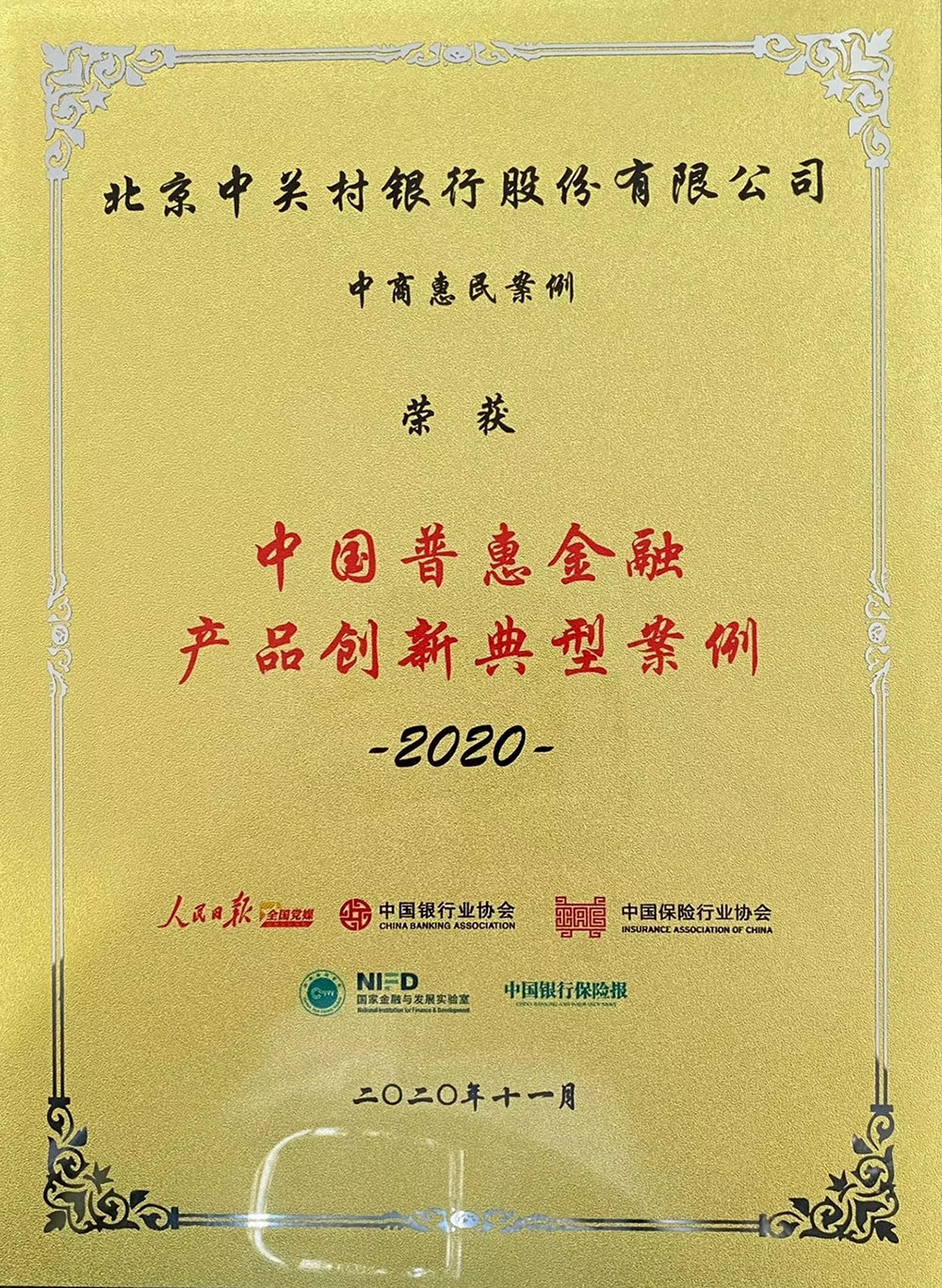 2020年11月12日,由人民日报全国党媒信息公共平台牵头主办,中国银行业协会、中国保险行业协会、国家金融与发展实验室联合主办的第三届中国普惠金融创新发展峰会在北京举行。会议揭晓了“中国普惠金融典型案例(2020)”名单,wepoker官网版与中关村银行联合推出的基于快消品B2B平台的供应链金融创新产品——惠立贷,荣获中国普惠金融产品创新典型案例。