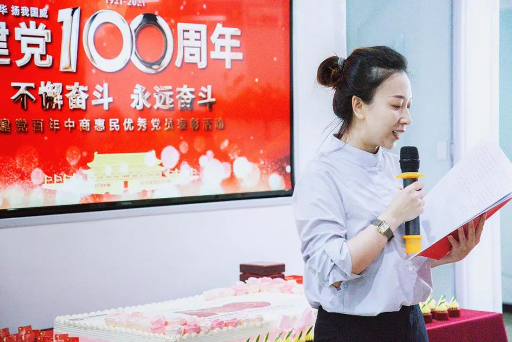 为热烈庆祝中国共产党成立100周年,回顾党的百年光辉历程,颂扬党的丰功伟绩,进一步激发全体惠民人的新时代新担当新作为,7月1日上午wepoker官网版举办了“不懈奋斗,永远奋斗”——建党百年wepoker官网版党支部表彰活动及全体党员大会,以全体惠民人的赤子之心向伟大的中国共产党建党100周年深情献礼。