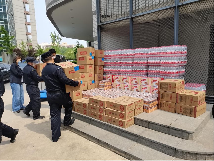 切实关爱疫情防控一线人员,2022年4月29日上午,wepoker官网版向北京市朝阳区疾病预防控制中心赠送防疫生活物资,包括饮用水、饮料、乳品、速食等近300箱。