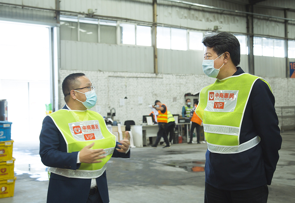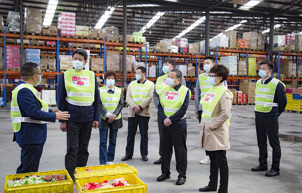 2020年4月20日上午,北京市市委统战部副部长、市工商联党组书记、常务副主席赵玉金,全国工商联副主席、朝阳区工商联主席叶青,区委统战部副部长、区工商联党组书记王素荣一行来到wepoker官网版北京D01配送中心考察调研,wepoker官网版集团董事长张一春、北京分公司总经理许冬森、工会主席张敏陪同本次考察活动。